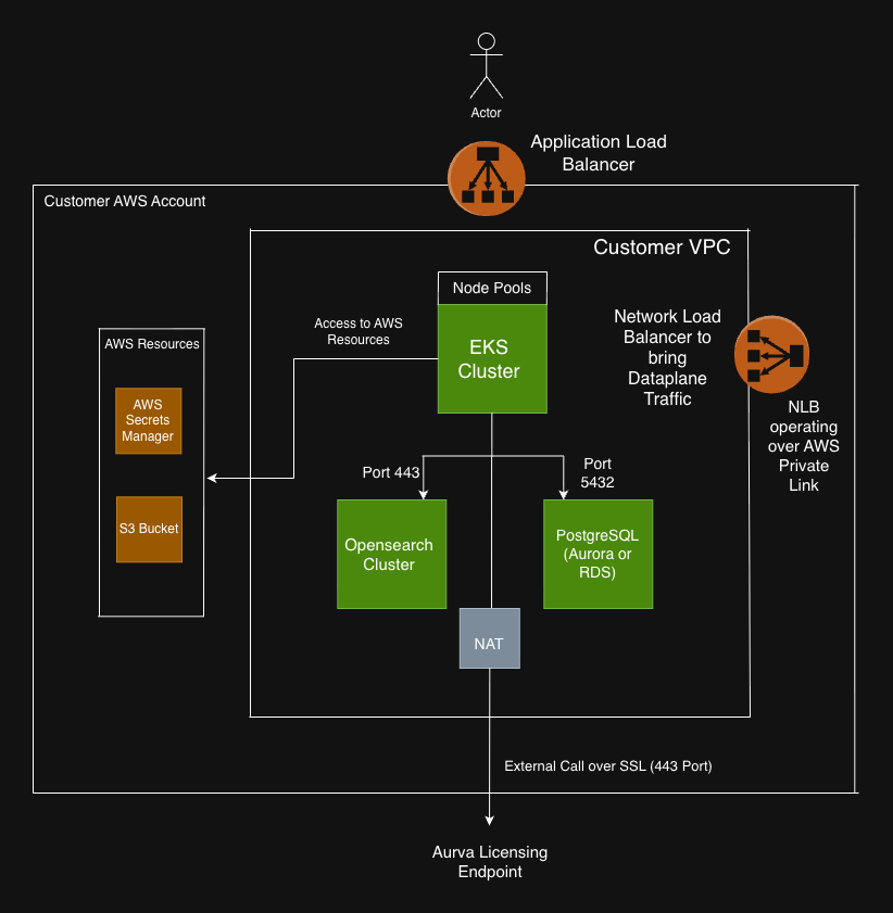 Reference architecture for the Aurva PaaS control plane on AWS.