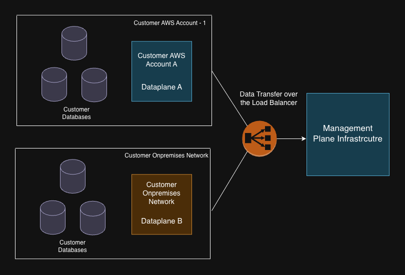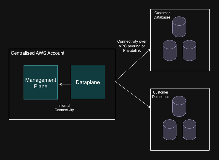 - Control Plane infrastructure VPC should be able to reach the databases deployed in multiple different customer AWS Accounts.