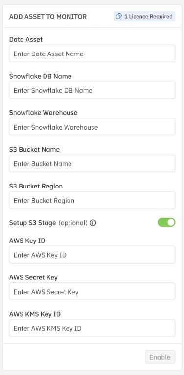 Figure 3: Add Asset to Monitor — Snowflake variant with S3 staging configuration