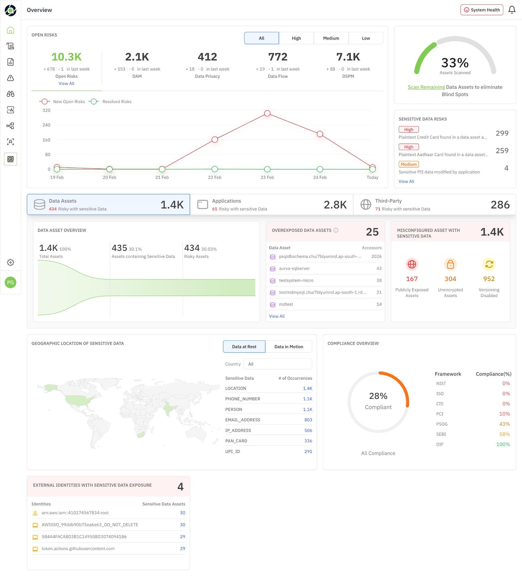 Figure 1: Overview Dashboard — full view showing all data security posture sections